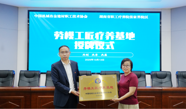 日前,中国机械冶金建材职工技术协会为湖南省职工疗养院张家界院区举行“劳模工匠疗养基地”授牌仪式。此次授牌是弘扬全社会劳模精神、劳动精神、工匠精神的生动实践,也为基地建设与服务工作迅速、有序展开奠定了基础。
