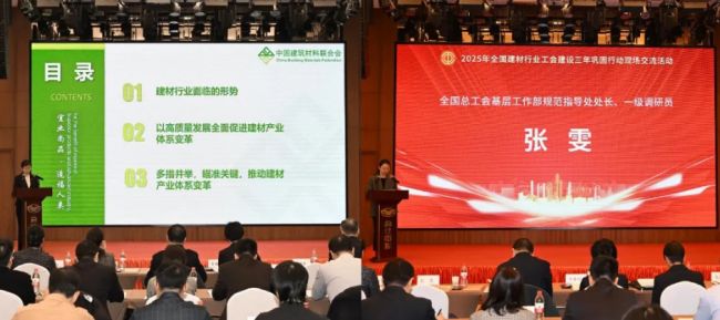 就加强建材行业企业工会建设,中国机械冶金建材工会主席、分党组书记李睿祎指出,全国建材行业工会要学习贯彻党的二十届四中全会和中央经济工作会议精神,进一步坚定信心、明确目标;聚焦行业高质量发展,动员广大职工建功立业;深化产业工人队伍建设改革,建设一支高素质的产业工人队伍;提升维权服务能力,维护和谐稳定的行业劳动关系;坚持工会组织标准化建设、规范化运行,更好发挥党联系职工群众的桥梁纽带作用,为“十五五”开好局、起好步贡献建材人的智慧和力量。